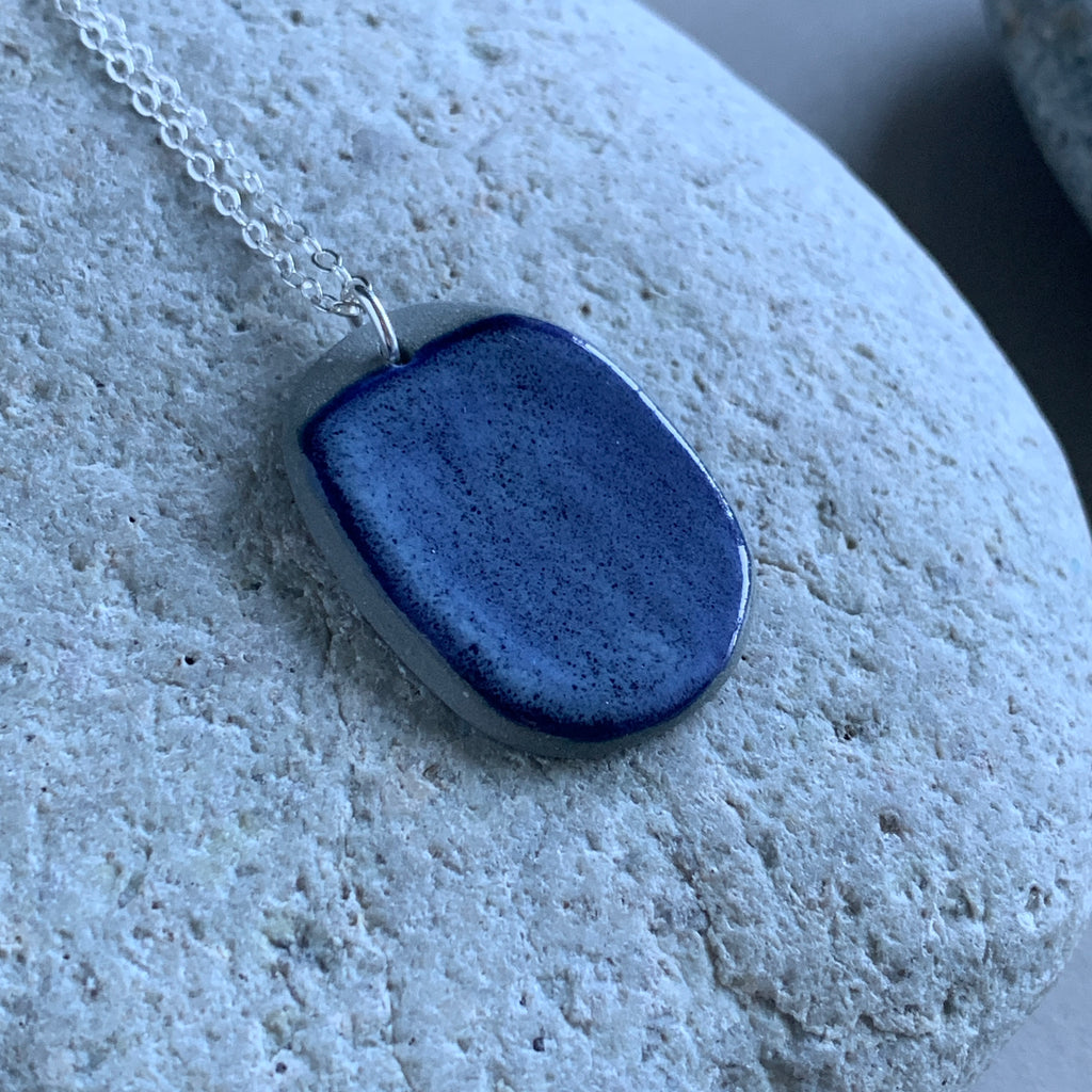Hand painted large bilberry necklace. Made from grey high fired porcelain clay with a bilberry glaze.